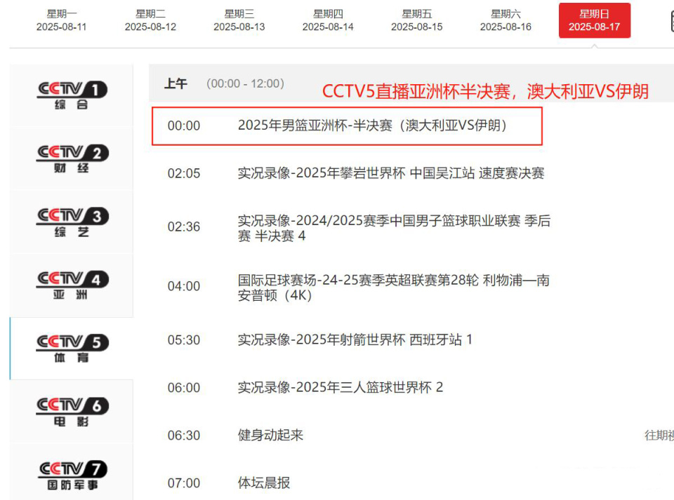 赛事转播方面,央视体育频道已公布完整直播计划,包括中国男篮半决赛及澳大利亚对阵伊朗的比赛。在竞技成绩与舆论压力的双重背景下,中国男篮的后续表现值得关注。